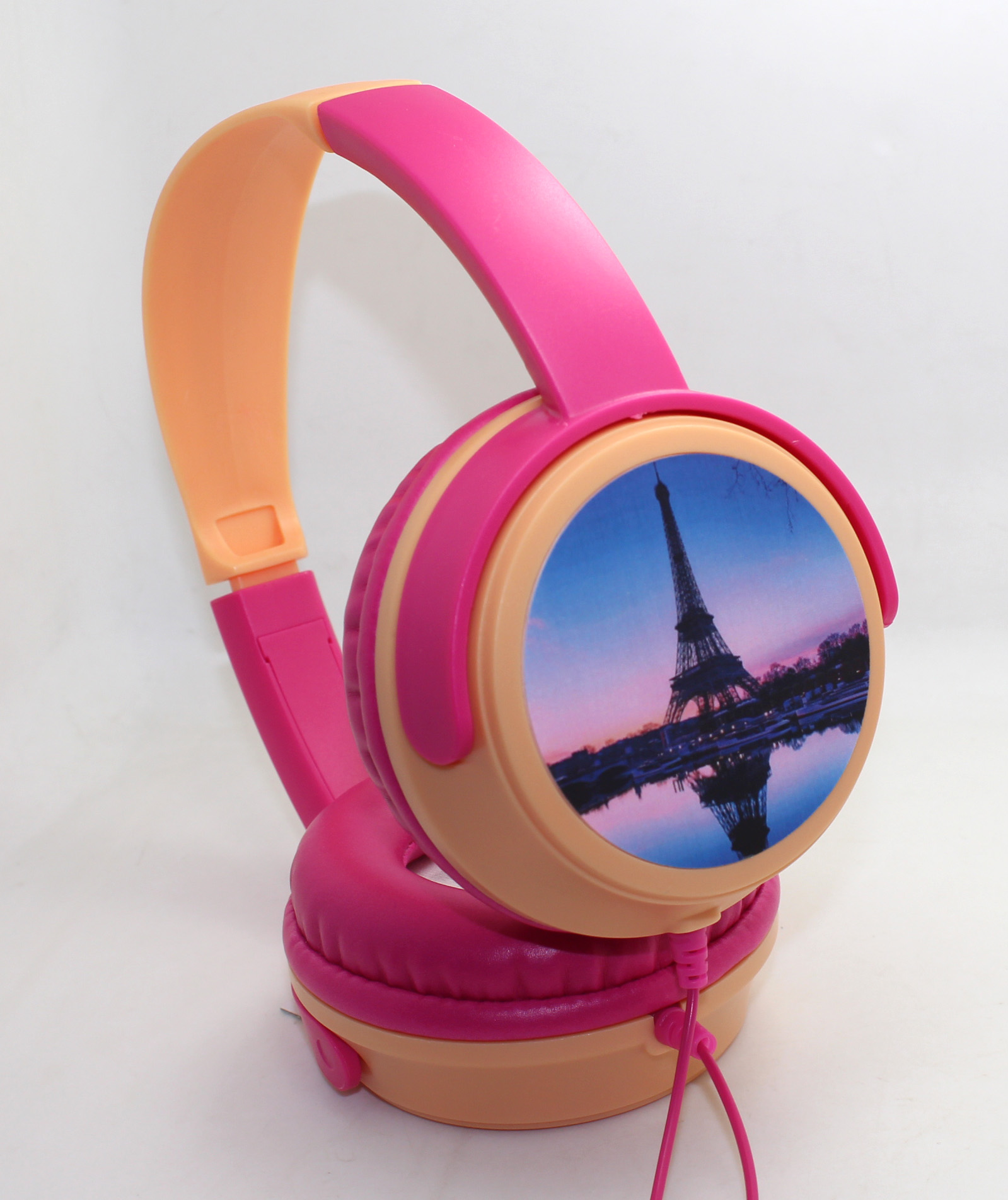 Durable kids headphone , light weight and fashion appearance , wearing comfortable and naturally , foldable design , easy carry .